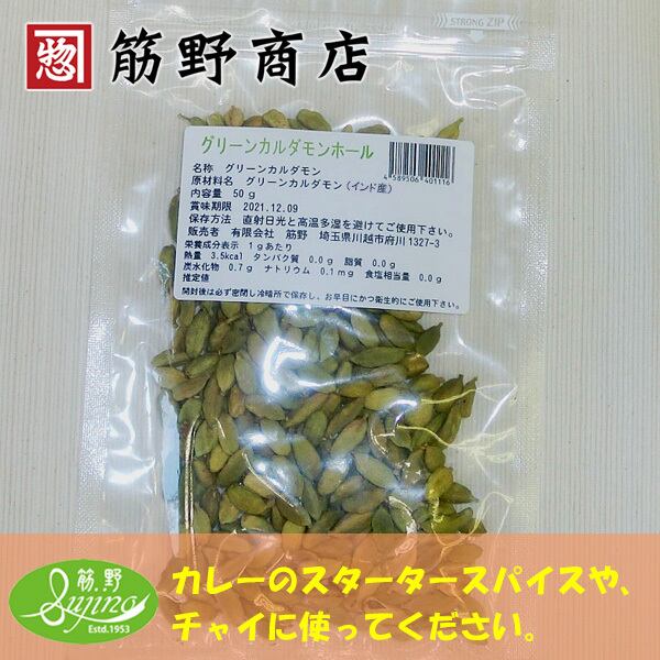 グリーンカルダモンホール 50g インド産 スパイスカレー スパイス spice 香辛料 Green Cardamon Whole sujino